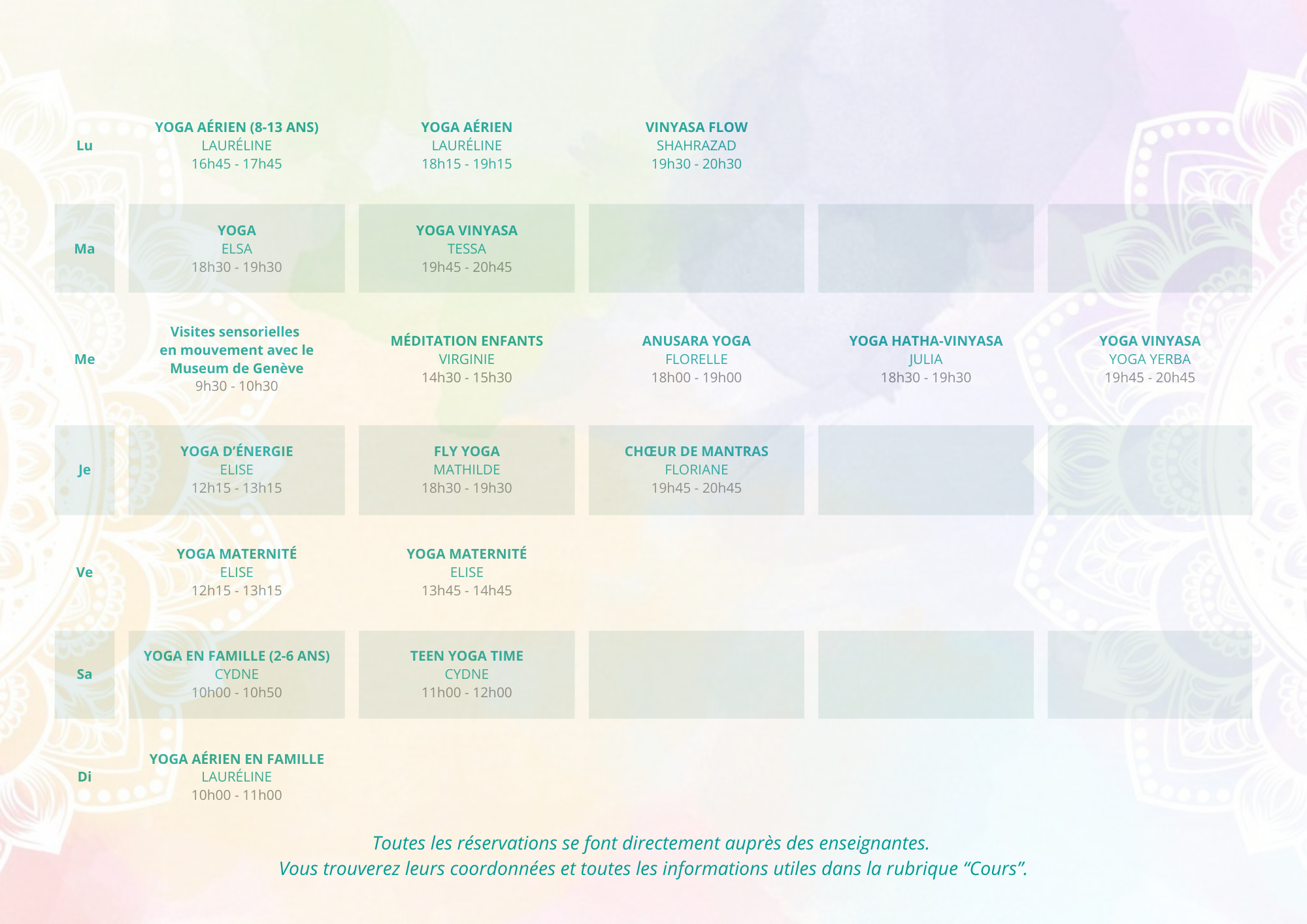 Installé à Carouge, au 6 rue Louis-de-Montfalcon, nous vous accueillons dans une atmosphère chaleureuse et vous proposons des cours de yoga pour adultes en plus des activités pour enfants que nous vous proposions jusqu’à maintenant.